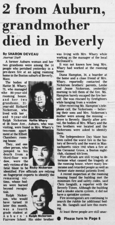 Nine-year-old Ralph Nickerson was the youngest victim. He lived with his parents in Maine but was visiting his grandmother and brother at the time.
