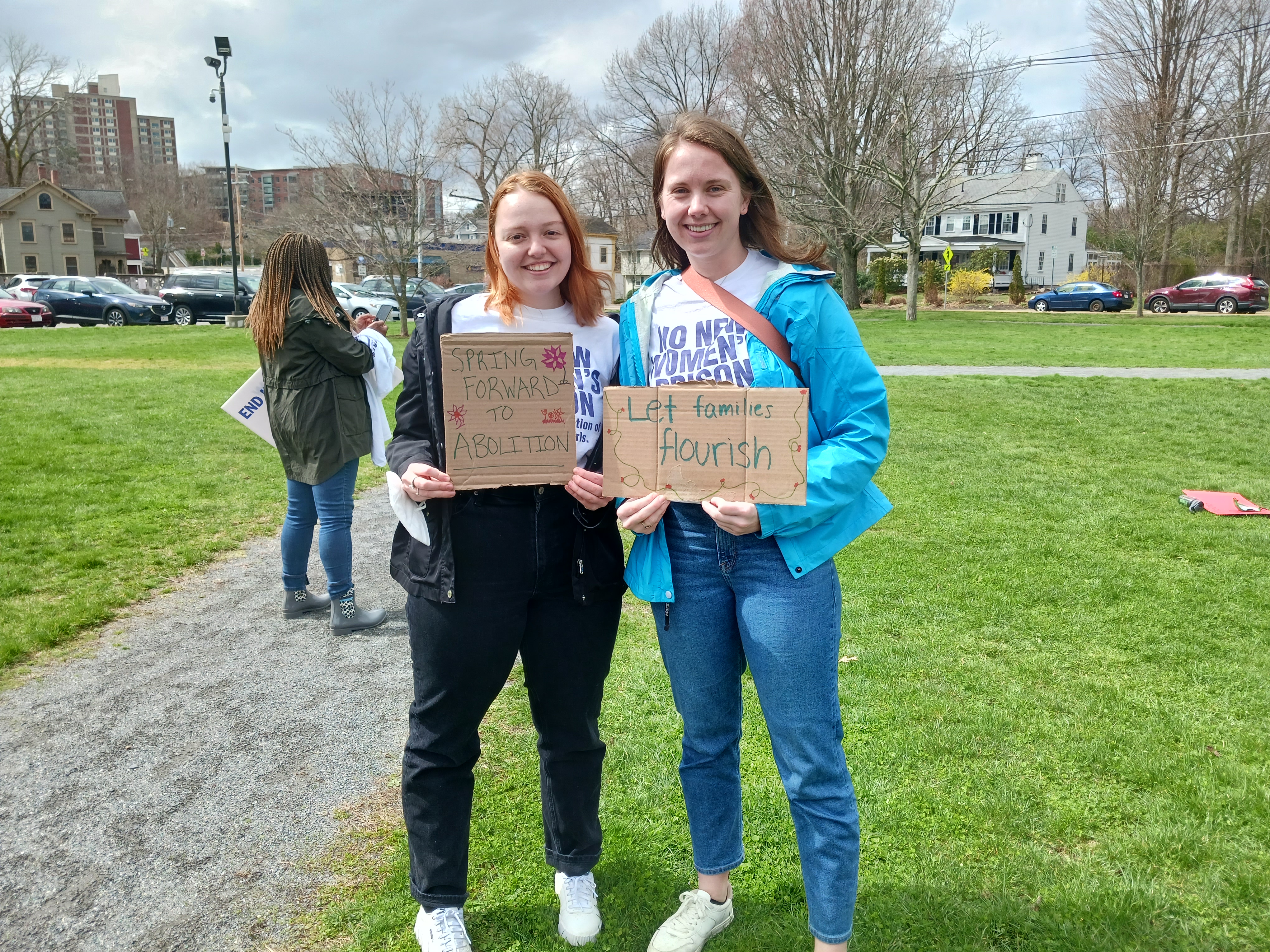 Hoffer joined up with Chase-Dempsey, another volunteer organizer with People Not Prisons. As Hoffer drove them to their destination, they wondered if they would encounter any MCI-Framingham employees. They discussed the high suicide rate for prison officers and said they hoped the guards could find less traumatizing, more fulfilling work than caging their fellow human beings.